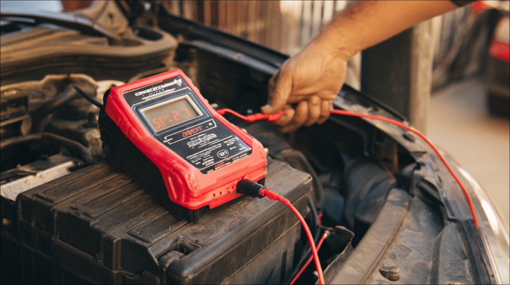 - Verify connections: Make sure both clips are making solid contact with the battery terminals.